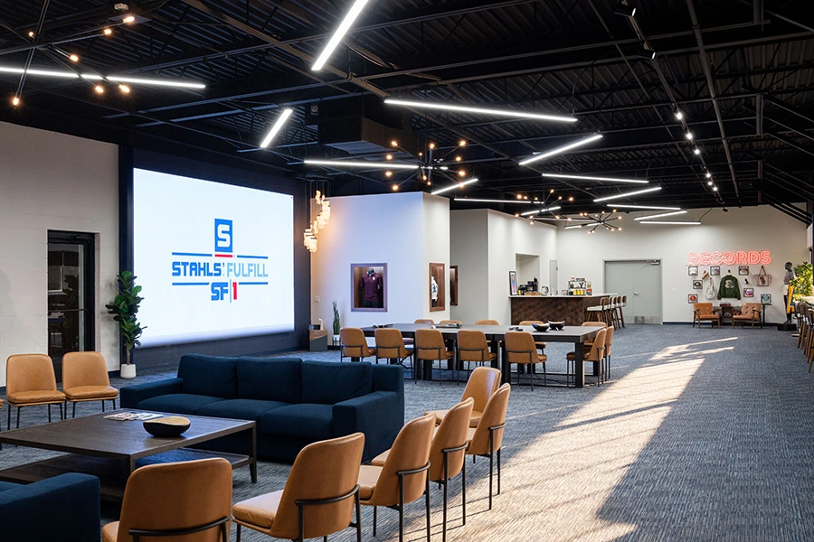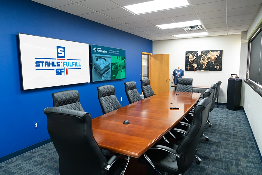 Bienvenido a SF-1, el nuevo Centro de Cumplimiento e Innovación de STAHLS' en Chesterfield, Michigan. Este es un destino único creado para creadores, marcas y fabricantes que desean ver qué es posible cuando la impresión bajo demanda se encuentra con la producción del mundo real.